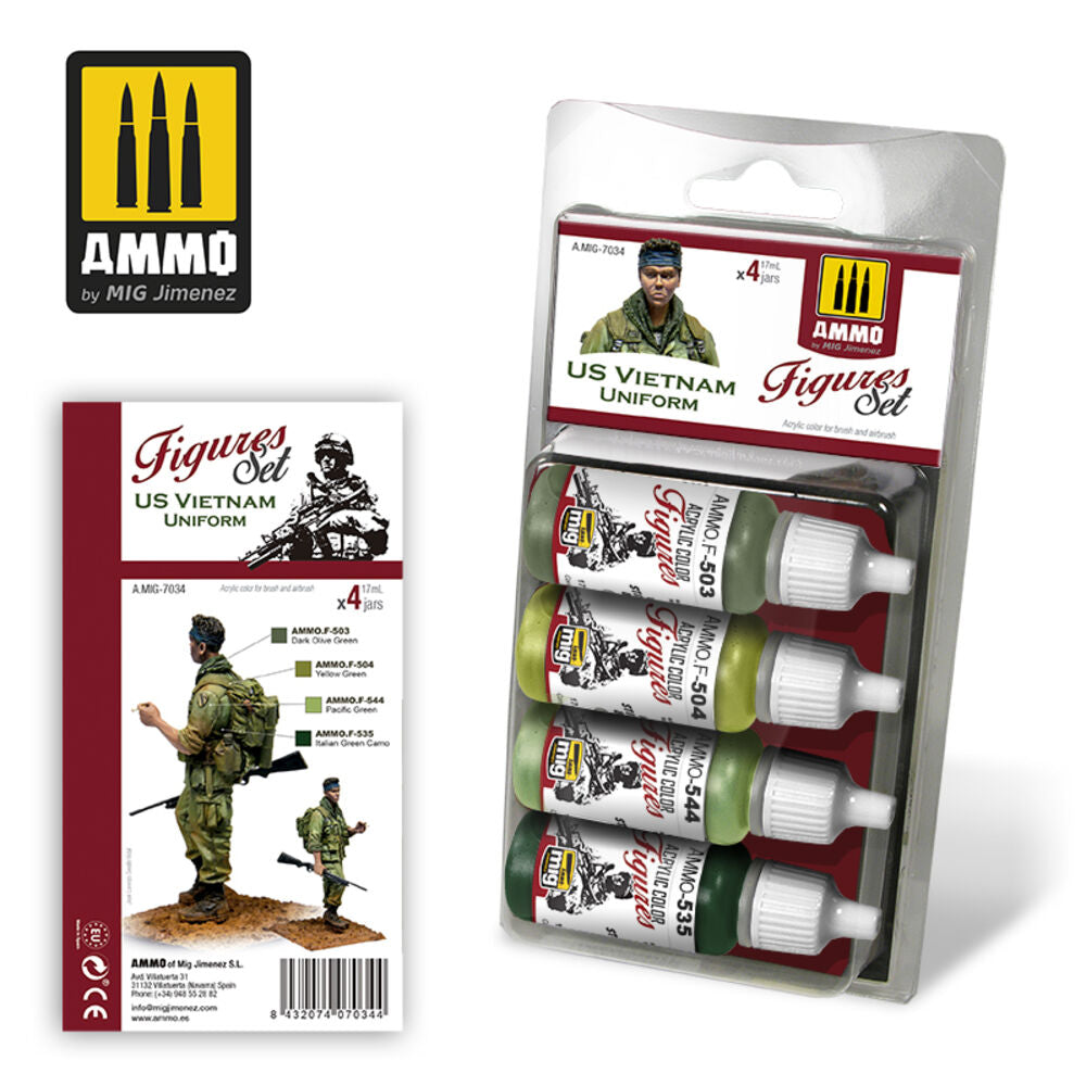 1 x FIGURES PAINTS Dark Olive Green FS-34130 (AMMO.F-503)1 x FIGURES PAINTS Yellow Green FS-34259 (AMMO.F-504)1 x FIGURES PAINTS Italian Green Camo (AMMO.F-535)1 x FIGURES PAINTS Pacific Green (AMMO.F-544)